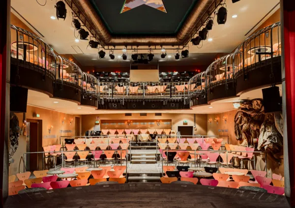 Je nach Gruppengröße bieten wir Ihnen vom Sekt zur Begrüßung bis zum Flying Buffet nach der Vorstellung unterschiedliche Optionen für Ihren Empfang im unteren und oberen Foyer sowie nach der Vorstellung im Theatersaal an.